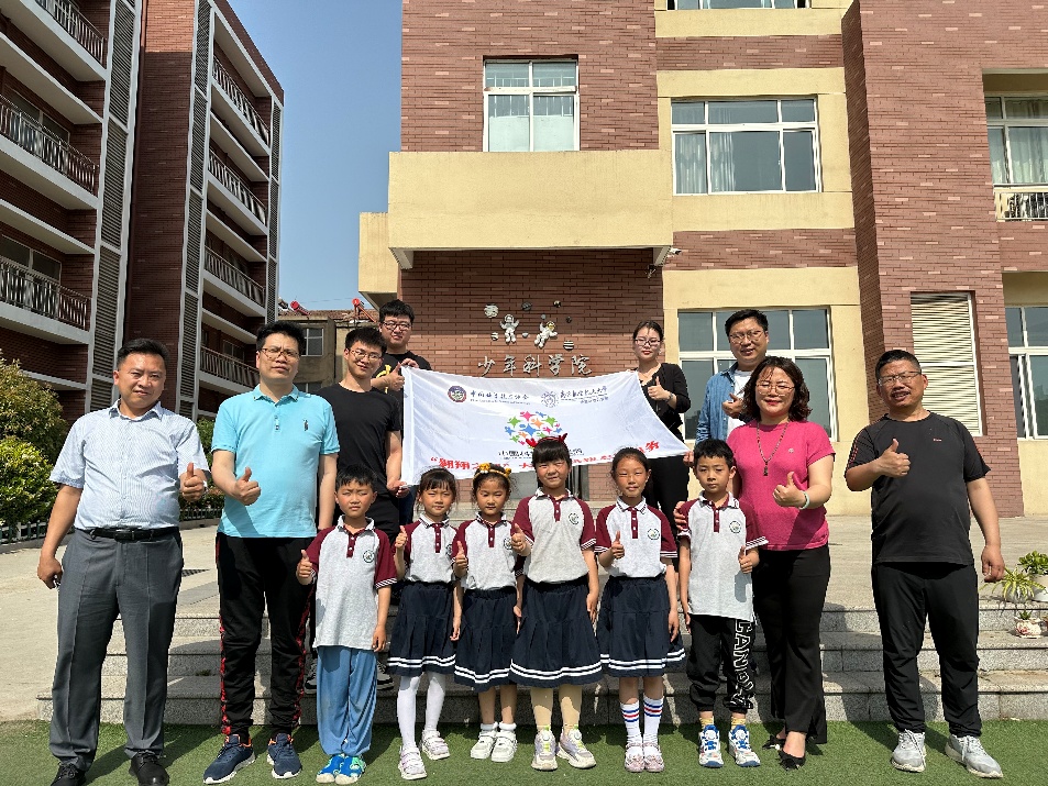 5月15日,学院走进徐州市城东实验小学开展“翱翔之翼”科技志愿服务活动,举行项目基地挂牌仪式,向小学生宣讲科学家精神,科普航空航天知识。城东实验小学副校长樊茜、杨成盾,徐州鼎科文化传播有限公司董事长王正辉,学院党委副书记樊小杰,学院“翱翔之翼”科技志愿服务团队成员共同参与此次活动。