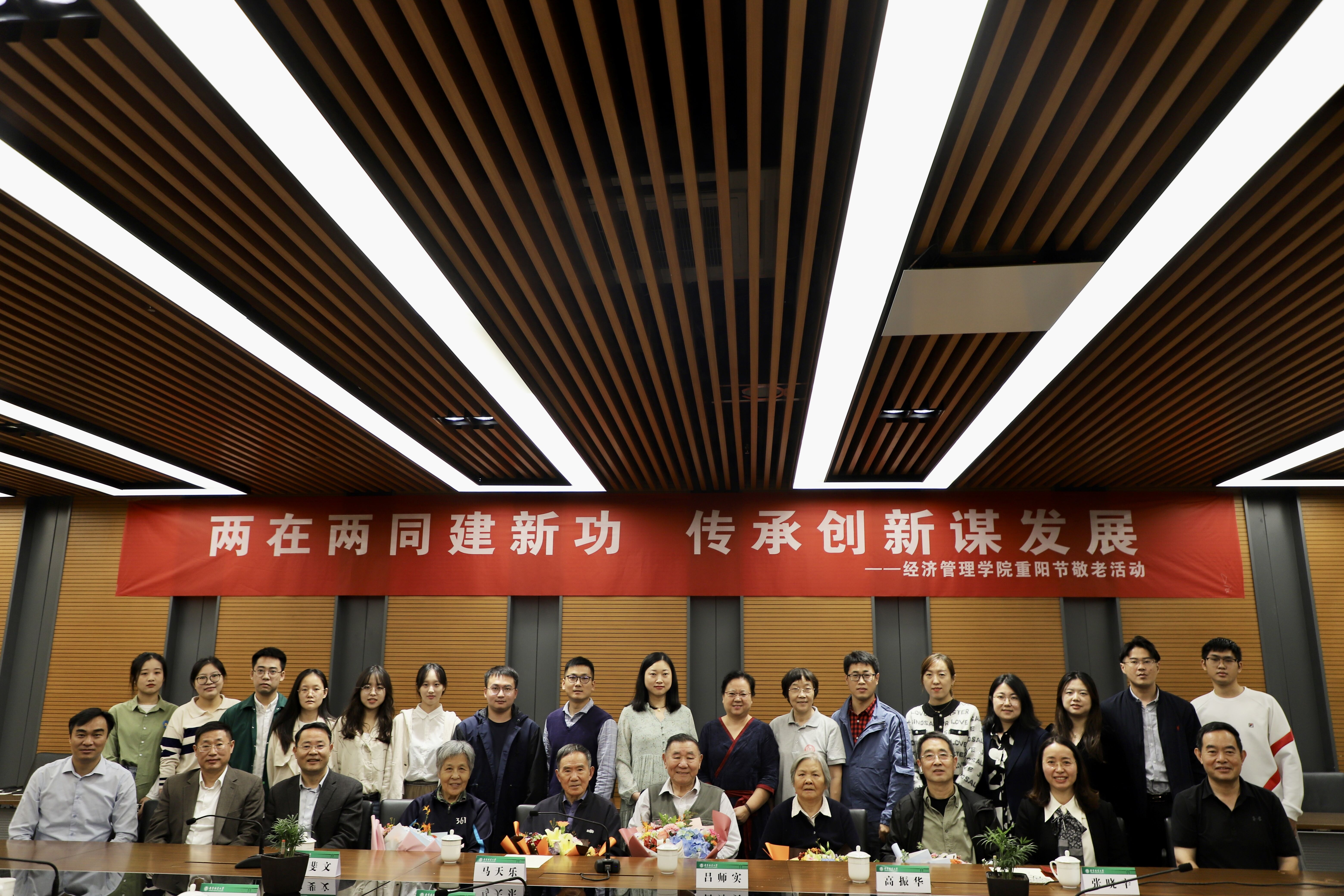活动中,退休教师代表分别作了宝贵发言和指导。马天乐老师对学院高度重视敬老传统及对退休教师的关心、祝福表示由衷感谢。同时,他肯定了学院科研、教学等方面所取得的巨大进步,为学院各项事业百花齐放的积极态势感到振奋和鼓舞,希望学院能保持向上势头并继续努力,进一步调动全体教职工的积极性。吕师实老师为学校、学院近些年的发展和建设感到由衷高兴,为学院硬件设施、学科门类等方面的不断完善表示欣慰。同时,他结合自身经历讲述了与南林的缘分以及为了更好的完成教学工作而不断进行业务能力充实、提高的难忘回忆。高振华老师首先对学院的关心和支持表示感谢,并结合过去教学中存在的部分问题进行分析,围绕教学质量提高进行深入阐释,提出教师应养成良好的教学习惯,避免空洞无味式的教学,力争让学生乐于听课、听有所获。张晓辛老师介绍了自己当时来南林任教时的种种场景,结合自身经历和学院近些年的发展,对学院如今的发展表示欣慰。同时,回首当初条件艰苦但所有人一起努力奋斗的经历,他表示,条件的艰苦并不能限制经管院师生们努力向上,为国家发展的做出贡献的崇高爱国热情。