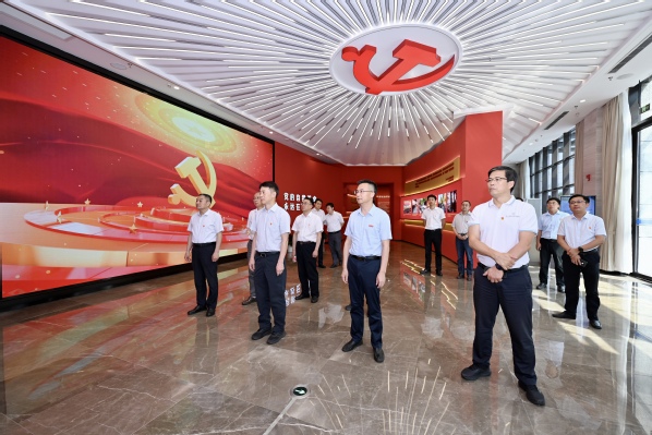在解说人员的引导下,中心组成员观看专题片《永远吹冲锋号》,并依次参观“举旗定向 指路领航”“以案明纪 挺纪在前”“以案促改 系统施治”“以案为鉴 警钟长鸣”四个主题展厅,重温习近平总书记关于全面从严治党的重要论述和对江苏工作的有关指示要求,深入学习廉洁自律准则、中央八项规定、党的六项纪律和十类主要问责情形。展区中触目惊心的典型案例和违纪违法人员的深刻忏悔,给在场每一位党员干部带来了强烈震撼,深刻警醒党员领导干部常敲思想警钟、常紧纪律之弦、常存敬畏之心。