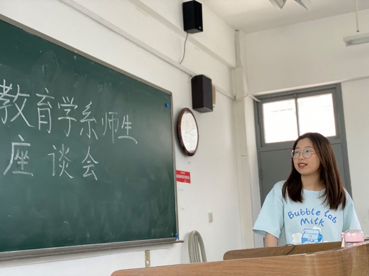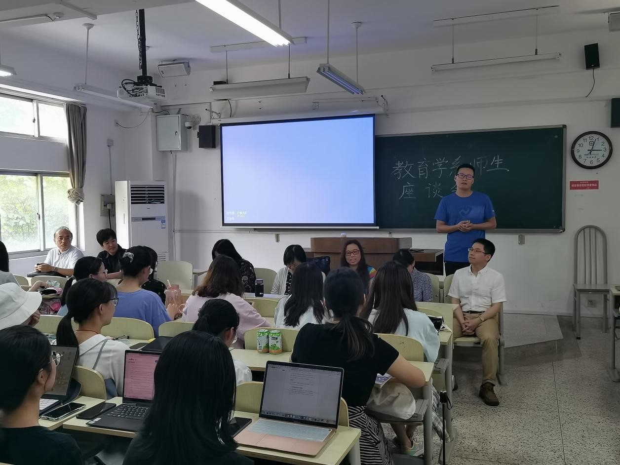 2021年6月7日下午,教科院教育学系2021年春学期师生座谈会在学正楼213教室如期召开,座谈会由齐立旺老师主持,张蓉、徐文彬、生兆欣、高水红、陈何芳、吴元发、黄梦婉、刘齐、朱洪洋等老师出席,教育学系17级、18级、20级全体学生准时参会,会议旨在加强师生间交流,为同学们的生涯规划提供建议。