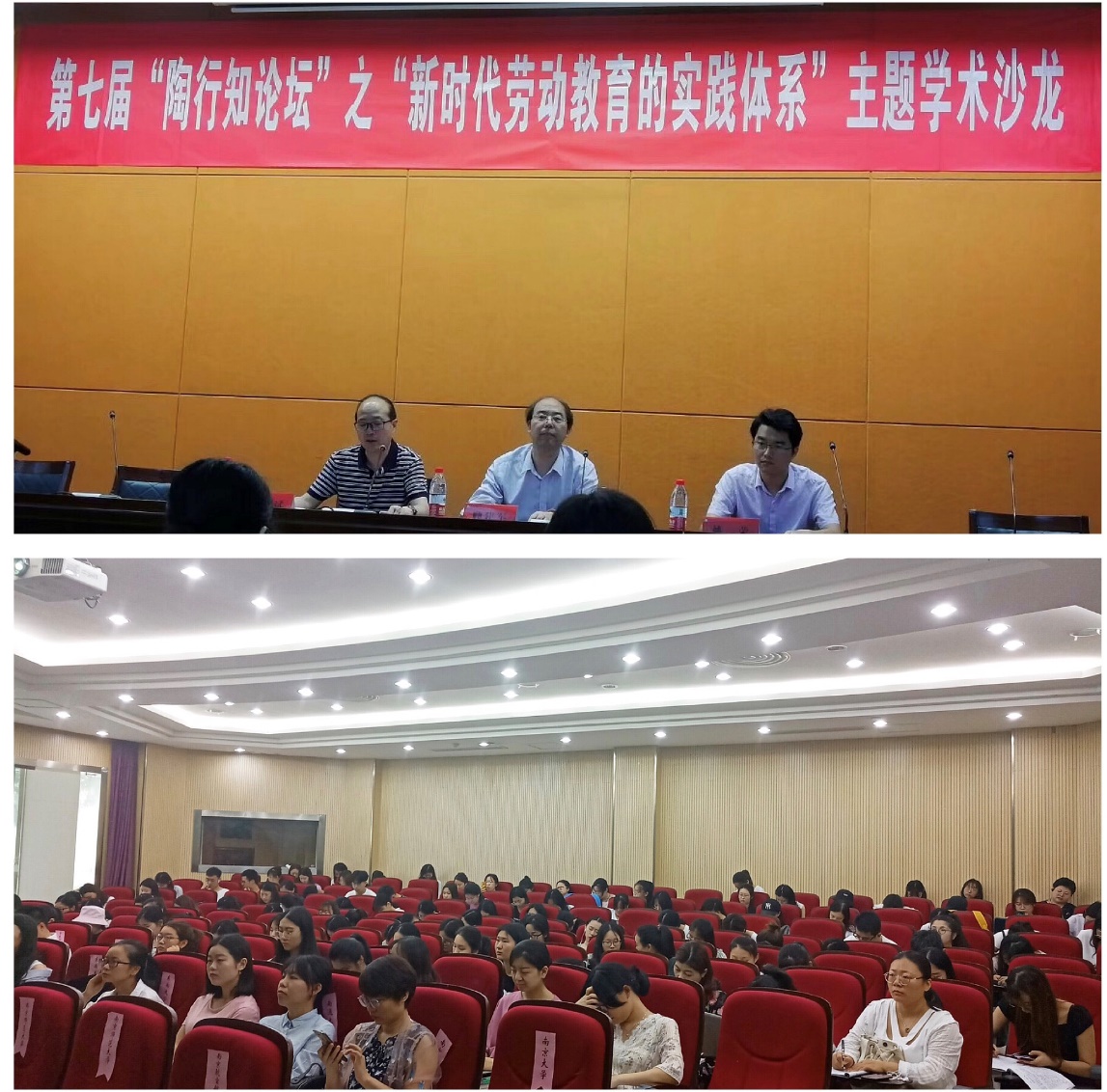 2019年6月17日上午,第七届“陶行知论坛”之“新时代劳动教育的实践体系”主题学术活动在南京师范大学田南楼国际报告厅举行。来自南京大学、东南大学、河海大学、苏州大学、华东师范大学、南京师范大学等14所泛长三角地区教育学研究生学术联盟理事单位代表参加。南京师范大学教育科学学院院长顾建军老师、副院长邵泽斌老师、高等教育研究所姚荣老师出席论坛开幕式。