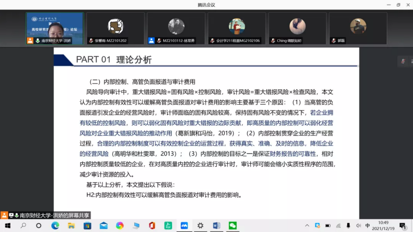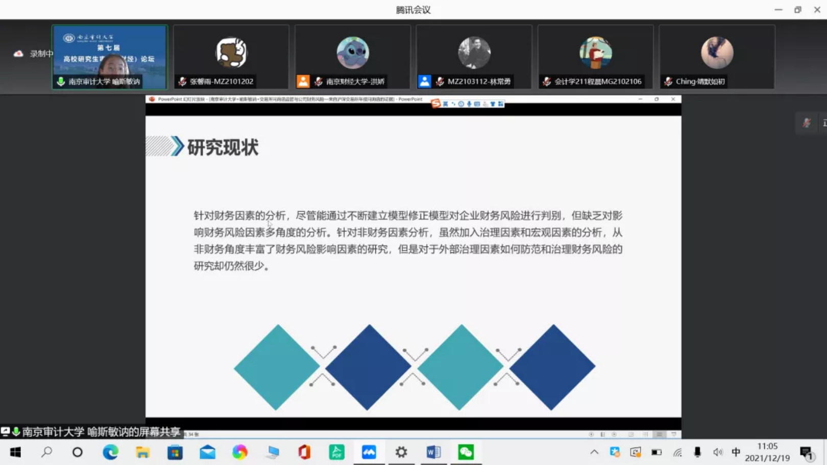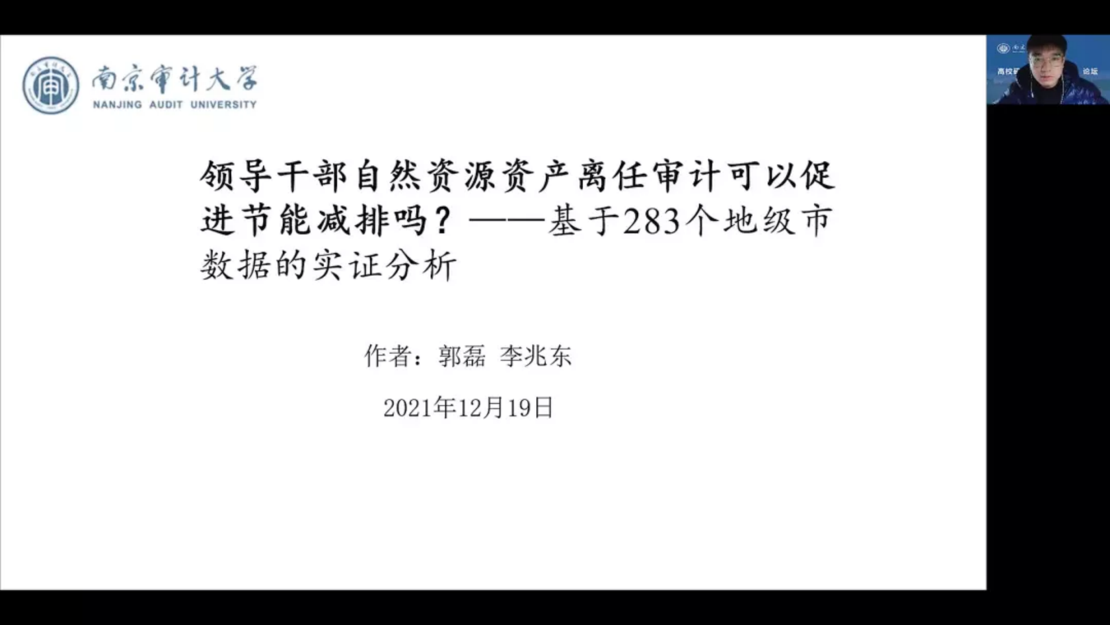 2021年12月19日,由南京审计大学主办的“2021年第七届高校研究生审计(财经)论坛”在线上隆重举行。