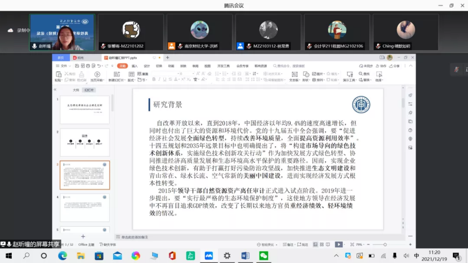 李佳林、洪娇、喻斯敏讷和赵昕曈四位同学就审计、会计领域中的热点研究话题以论文讲述的方式向大家进行了分享。