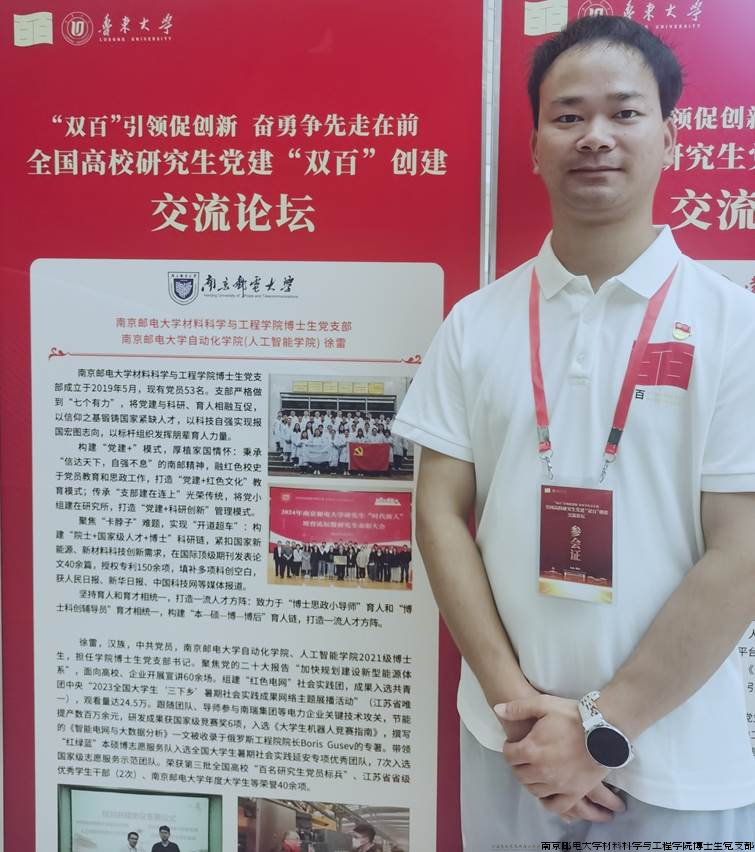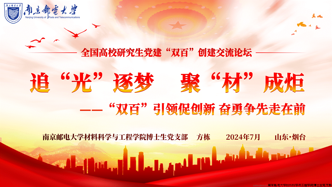 在第三批全国高校“百个研究生样板党支部”书记平行论坛上,博士生党支部书记方栋以《追“光”逐梦 聚“材”成炬》为主题进行交流发言。他结合党支部概况、培育创建情况、取得的成效等方面,详细介绍了党支部以“‘党建+’模式筑牢信仰之基,锻铸国家紧缺人才”、以“科研链夯实自立自强根基,勇攀‘开道超车’之峰”、以“标杆组织发挥朋辈育人力量,打造一流人才方阵”的做法经验,并围绕通过研究生党建与科研、育人相融互促的特色建设思路,努力实现党建引领高质量发展和科研创新突破式进步的目标探讨了作为“双百”样板党支部的下一步创建计划。