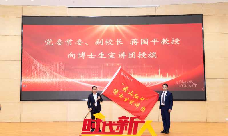 蒋国平副校长为博士生宣讲团授旗,为首批讲师颁发聘书