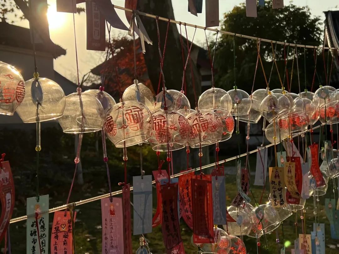 上图是拍摄于过年期间全家人一起出门游玩的照片,风铃上写满了人们对未来的美好期盼与憧憬。