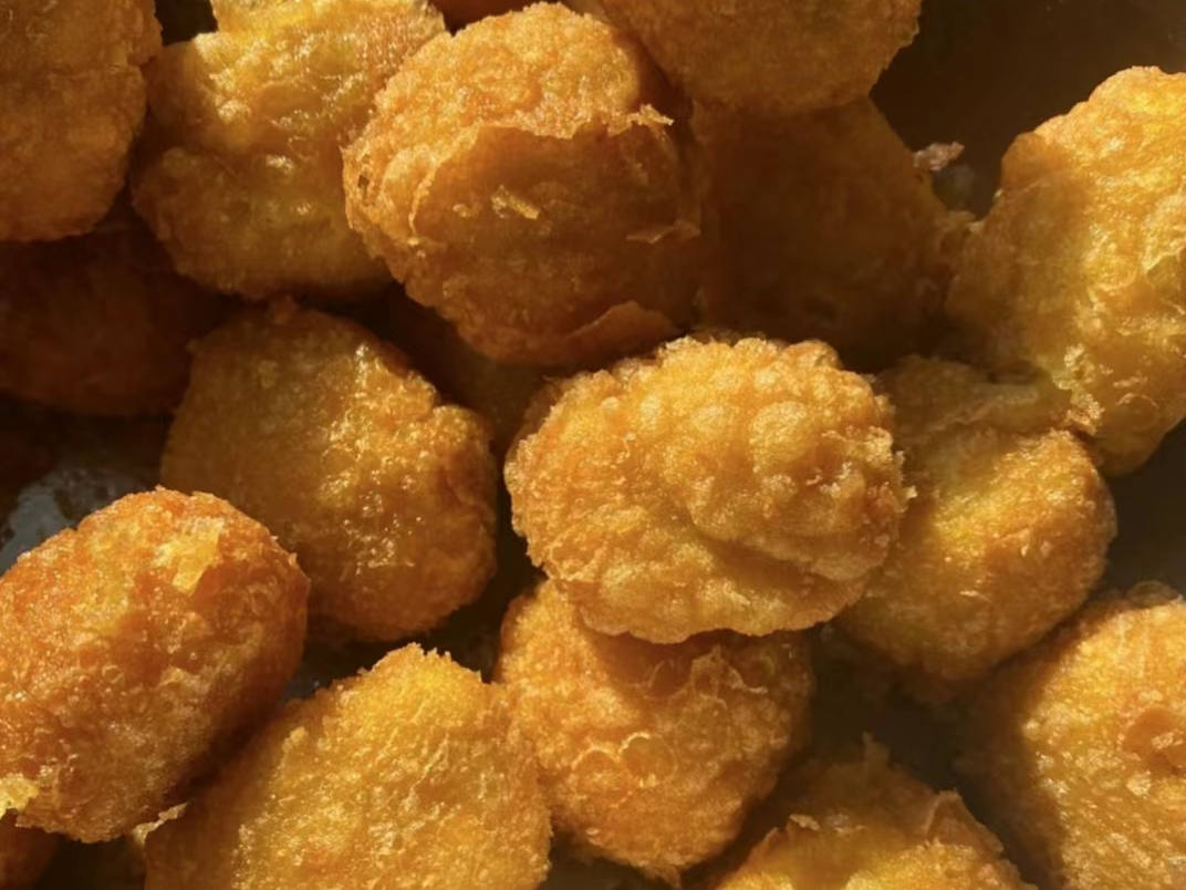 油炸糕是北方地区过年必不可少的食物。热气腾腾的油炸糕寓意着红红火火,步步高升。我的家乡多由黄米面包裹红豆馅。我一直记得我的姥姥每年都喜欢这一口油炸糕。每年都不会忘记吃。刚出锅的油炸糕外脆内软,在寒冷的冬日里吃一口便觉得十分幸福。