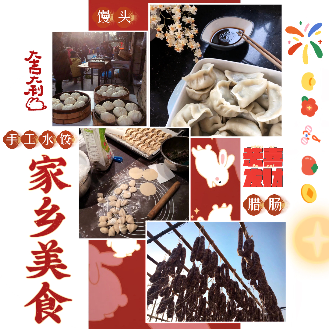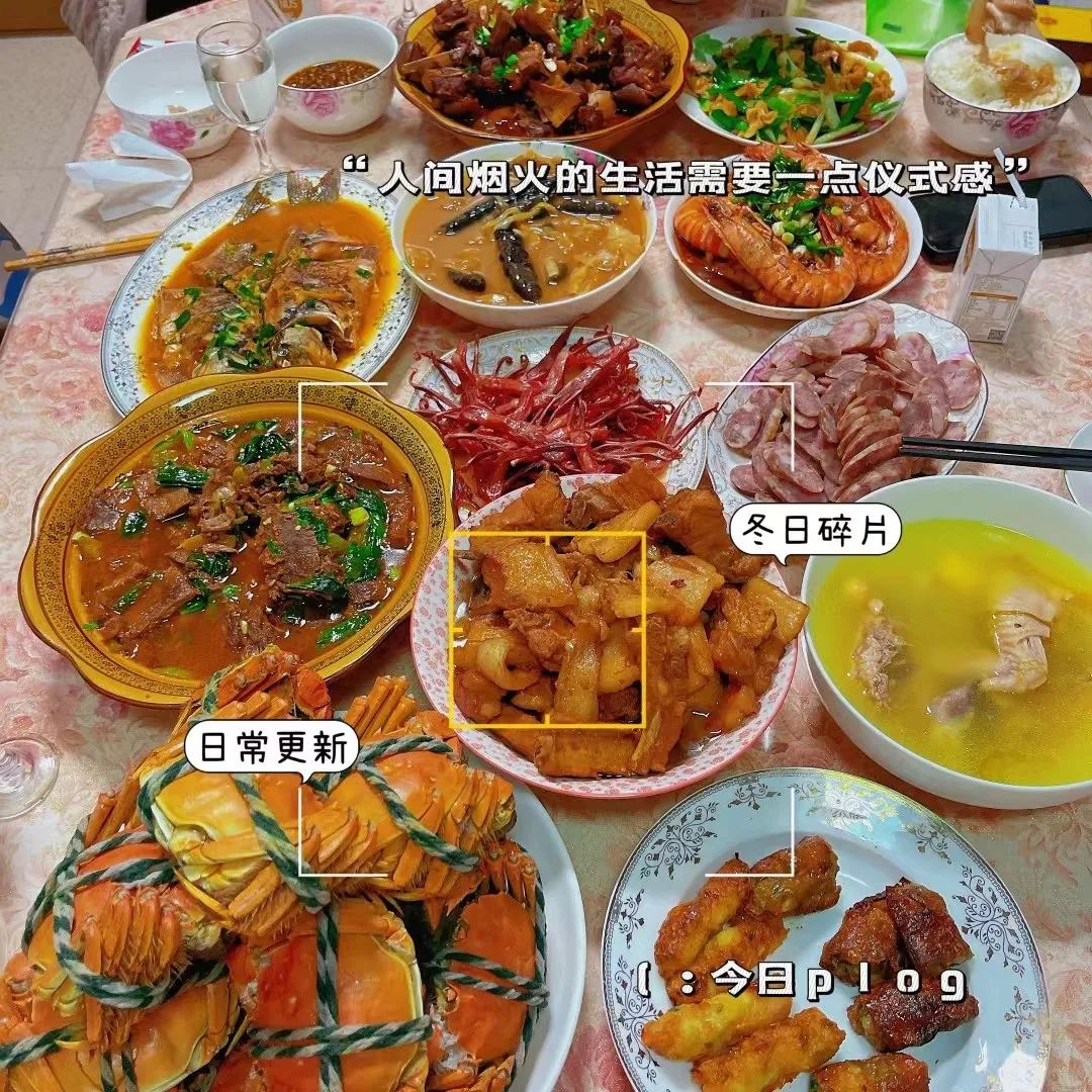 每年年夜饭都很丰盛,几家人聚在一起,共同分享特色菜肴,菜品从南方海鱼到北方红肠,穿插着江南的糯米团子,属实天南地北融于乡情。