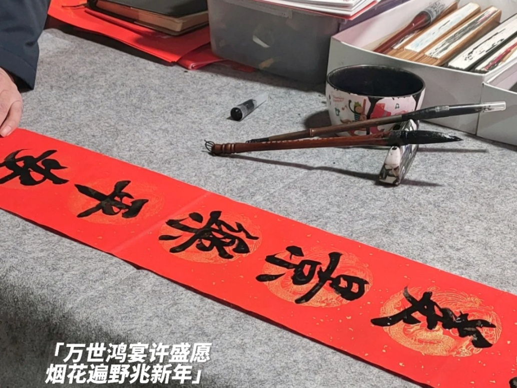 这张图片拍摄于23年除夕上午,据老人们说,要在除夕的早上贴春联。今年是第一次由孩子们贴春联,爷爷调好浆糊,孩子们便自己学着辨识上下联,小心翼翼的贴起了春联。第一次贴春联的孩子们或许并没有贴的很完美,但是靠自己完成的劳动成果仍然颇有成就感。