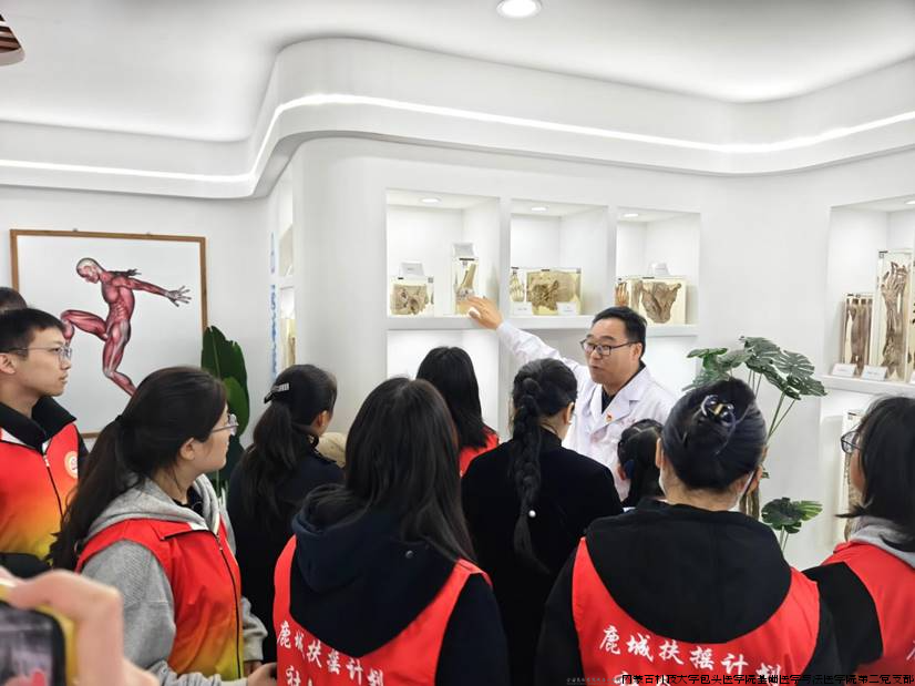 首先,人体解剖学实验室主任、第二党支部书记贾建新教授介绍了包头医学院人体解剖学科以及人体标本陈列馆的基本概况。包头医学院人体解剖学标本陈列馆位于包头市东河区建设路31号包头医学院校本部人体解剖实验楼一楼,该馆立足于包头医学院,辐射包头市,集教学、科研、科普等各项功能于一体。常年面向社会开放,展馆集虚拟化演示、标本专业化展陈、医学知识科普展示为一体,通过开展教学演示、科普教育、临床疾病相关解剖结构的讲解等活动,向社会展示生命科学的无穷魅力。