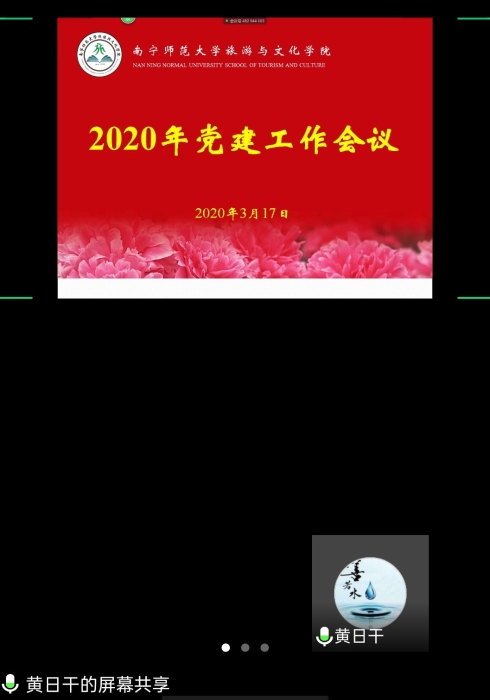 3月17日下午,旅游与文化学院召开2020年党建工作视频会议。会议传达了学校2020年党建工作会议精神,总结了该院2019年党建工作情况,并部署2020年党建工作任务。该院的党委委员、教工党支部书记、学生党支部书记参加云视频会议。会议由该院的党委书记黄日干主持。