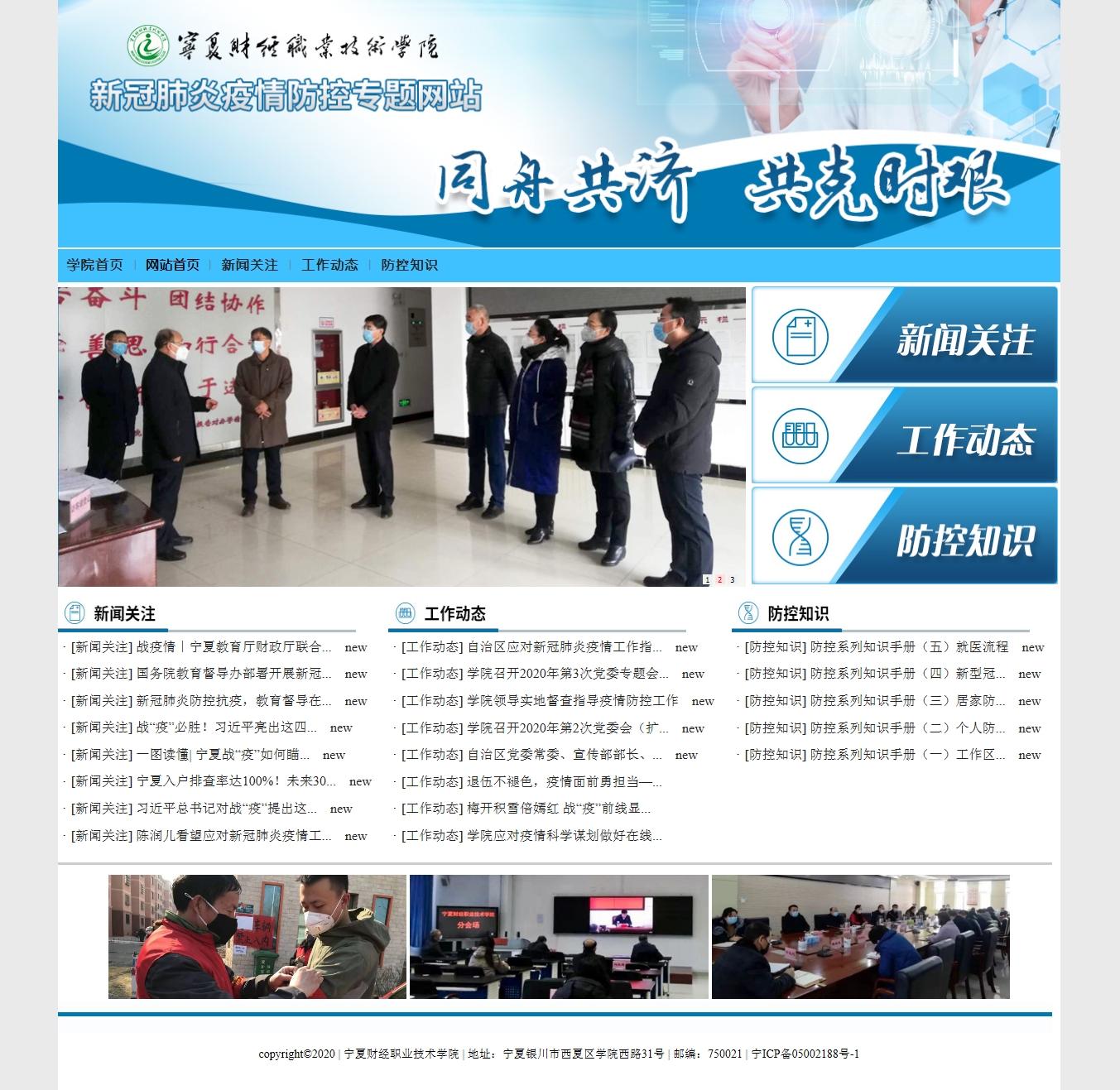 疫情发生以来,宁夏财经职业技术学院认真贯彻落实习近平总书记关于疫情防控的重要指示精神,按照自治区党委、政府,以及自治区教育工委、教育厅对疫情防控工作安排部署,及时研究制定具体措施,扎实开展疫情防控工作。