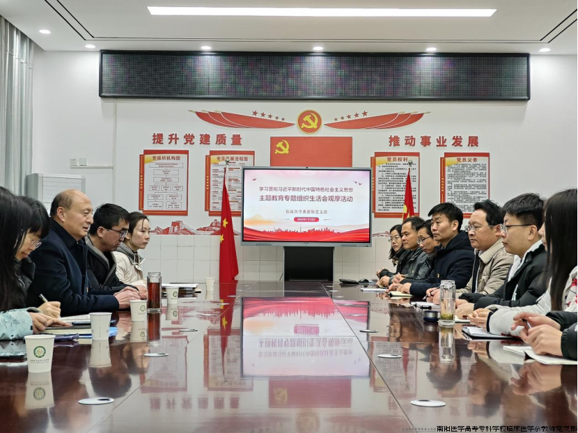 2023年1月18日下午,临床医学系教师党支部在4号教学楼党员活动室开展学习贯彻习近平新时代中国特色社会主义思想主题教育专题组织生活会观摩活动。邀请校党委委员、副校长张胜海和我校党支部书记代表观摩指导,临床医学系党政领导班子和教师党支部全体党员参加。会议由教师党支部书记黄川锋主持。