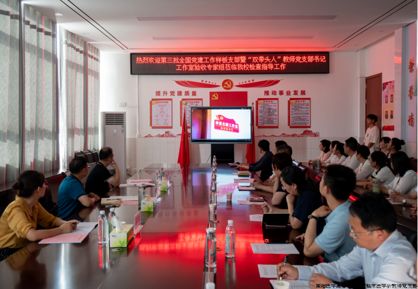 5月22日下午,第三批全国党建工作样板支部暨省级“双带头人”支部书记工作室验收专家组莅临我校,对临床医学系党总支教师党支部第三批全国党建工作样板支部培育创建情况进行实地验收,并对临床医学系省级“双带头人”支部书记工作室进行中期考核。专家组第五组组长、南阳职业学院党委书记魏文君,华北水利水电大学党委组织部组织科科长师胜祺,郑州轻工业大学党委组织部干部科科长金凯,校党委副书记、校长范真,校党委委员、工会主席杜晓平,校党委委员、副校长秦玖刚,党政办公室主任王岩,宣传部部长李红普,临床医学系党总支书记宗山林,组织部副部长邢富斌,临床医学系教师党支部书记、常务副主任黄川锋,组织部综合科科长武乐宁及临床医学系师生党员代表参会。会议由杜晓平主持。