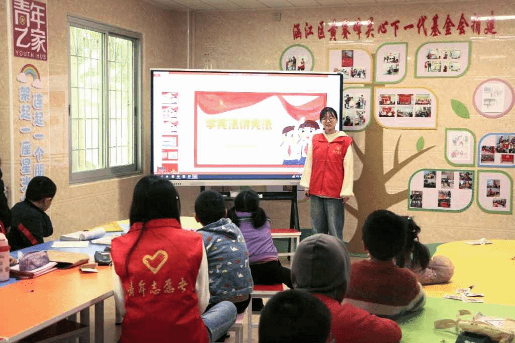 “小朋友们,你们知道国家宪法日是哪一天吗?”伴随着我们志愿者有关宪法的一个小问题抛出,本次主题支教活动也随之展开。台下刷刷地举起一片小手,小朋友们在回答问题的过程中表现得非常积极,他们脑洞大开,答案层出不穷,充分展现了他们的聪明才智和无限的创造力。随后志愿者用温柔的话语,既给洋留守儿童传授了宪法相关知识,也给洋留守儿童们送去了温暖与关爱。