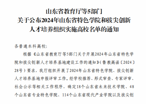近日,山东省教育厅《关于公布2024年山东省特色学院和拔尖创新人才培养组织实施高校名单的通知》(鲁教高函〔2025〕8号)发布,经省教育厅、工业和信息化厅等部门联合评审,我校申报的海尔 “衣联网” 现代产业学院成功获批山东省高校省级现代产业学院。