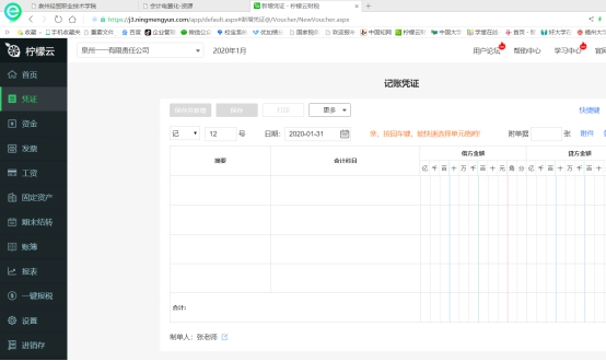3、要求总结金蝶与柠檬云财务软件平台的异同,以此促进教学内容的衔接转化,不仅将本学期的教学任务完成,学生还多掌握了一个柠檬云平台操作的财务软件内容。