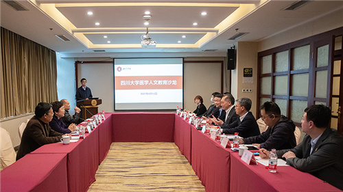 4月13日下午,我院在天使宾馆举办四川大学医学人文教育沙龙,研讨医学人文教育改革与发展问题。四川大学历史文化学院院长/博物馆馆长霍巍杰出教授、公共管理学院党委书记姜晓萍教授、文学与新闻学院文学与人类学研究所所长徐新建教授、哲学系徐开来教授出席。会议由我院党委书记张伟教授主持,罗凤鸣副书记、王坤杰副院长及相关职能部门负责人出席。