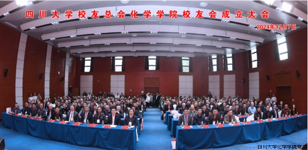 2024年12月7日,四川大学校友总会化学学院校友会成立大会在四川大学展业大厦101报告厅举行。中国工程院院士陈芬儿、中国科学院院士叶国安、原四川省人大常委会副主任李向志、原四川师范大学党委书记李向成、四川师范大学党委书记郭勇、四川大学副校长游劲松、刘超、中国工程物理研究院科技委副主任汪小琳、原国家海关总署副司长苗跃学、成都大学副校长刘娅、四川大学校友总会及学校各相关部处负责人、兄弟学院领导,化学学院老领导、老专家、教师和学生代表,各年级校友代表,社会各界人士,内江市和威远县的领导等,共计320余人参会。大会由化学学院党委书记谢均主持。