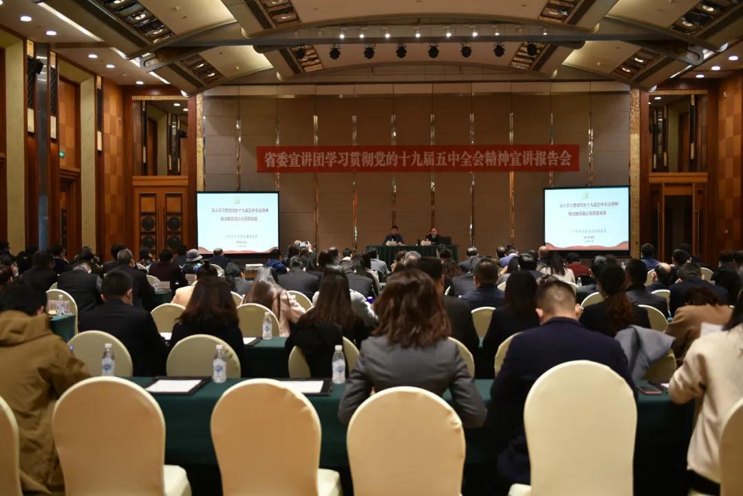 报告会上,蒋和胜教授的宣讲广征博引、脉络清晰、深入浅出,全面、深入且有针对性地解读了党的十九届五中全会的重大历史意义、指导思想、目标任务、重大举措等,既有理论的总结,也有材料的剖析;既有形象的说明,也有真实的案例,使听众对五中全会精神的理解更加深刻透彻,既增强了与会人员学习宣传贯彻的自觉性、坚定性,也推动了全会精神在各大国企、高校落地落实,不断谱写高质量发展新篇章。