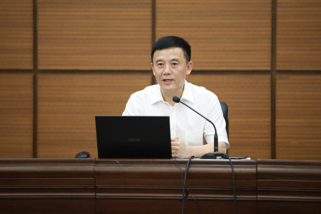 褚良银副校长作《高质量推进科技创新工作的“5-4-3-2-1”》工作报告。报告从推进科技创新工作,持续优化“五位一体”科技创新链、坚持科研的“四个面向”、抢抓“三个层面”的政策机遇、坚持“两个导向”、坚持“一个‘真’字”等方面进行了说明。
