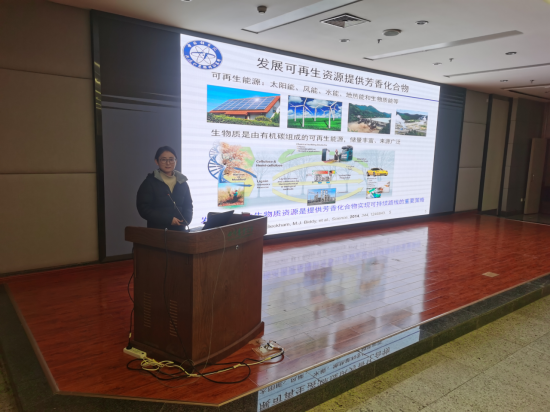 报告会上,赵丽博士结合目前催化木质素氧化裂解制备芳香化合物的研究意义及研究现状,从催化基础化学的方面介绍设计催化新材料在木质素氧化裂解中的应用,综合探讨催化剂的制备、表征以及利用木质素模型化合物探讨氧化裂解机理和催化作用机理。同时赵丽结合自身研究过程中遇到的问题,提出木质素氧化裂解可能发展的方向以及解决办法,为交叉领域方向的研究提供新思路。
