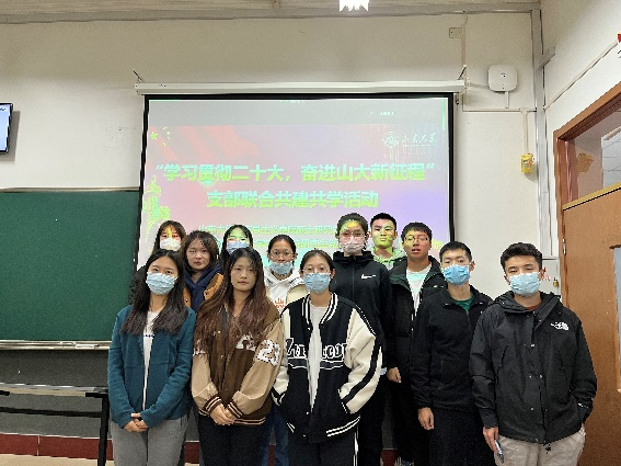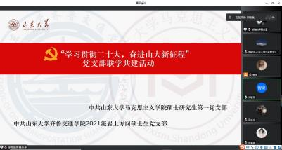 此次“学习贯彻二十大,奋进山大新征程”联学共建系列活动是新形势下加强基层党组织建设,实现共建党支部资源互补、学习相融合的有效举措。活动将党的二十大精神融入研究生的日常思想政治教育中,引导研究生党员树立远大理想、担当历史重任,自信自强、守正创新、踔厉奋发、勇毅前行,为实现中华民族伟大复兴贡献青春的力量。
