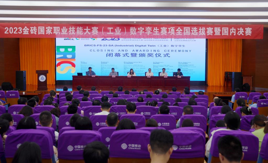 2023金砖国家职业技能大赛(工业)数字孪生赛项全国选拔赛暨国内决赛在安徽职业技术学院举行,全国20个省37支队伍近200名师生参赛。(工业)数字孪生赛项为团体赛,竞赛时长3个半小时,由数字化工厂设计、产线组装编程与调试、数字化工厂联调测试、数字化工厂优化四个模块组成。此次比赛不仅考验参赛选手专业知识和实操技能,更考验综合技能训练与临场应变能力。