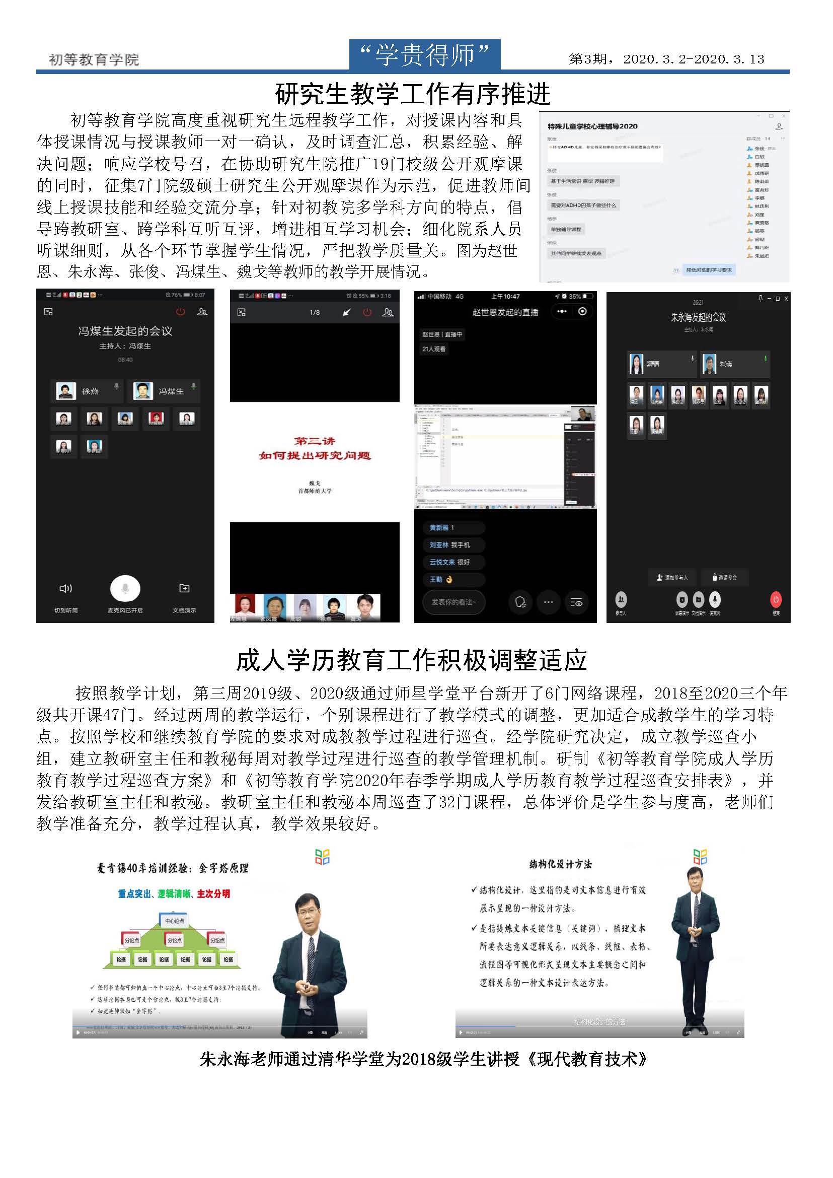 学贵得师——初等教育学院 抗疫 期间教学工作简报第三期。相关附件。学贵得师。——初等教育学院抗疫期间教学工作简报第三期。