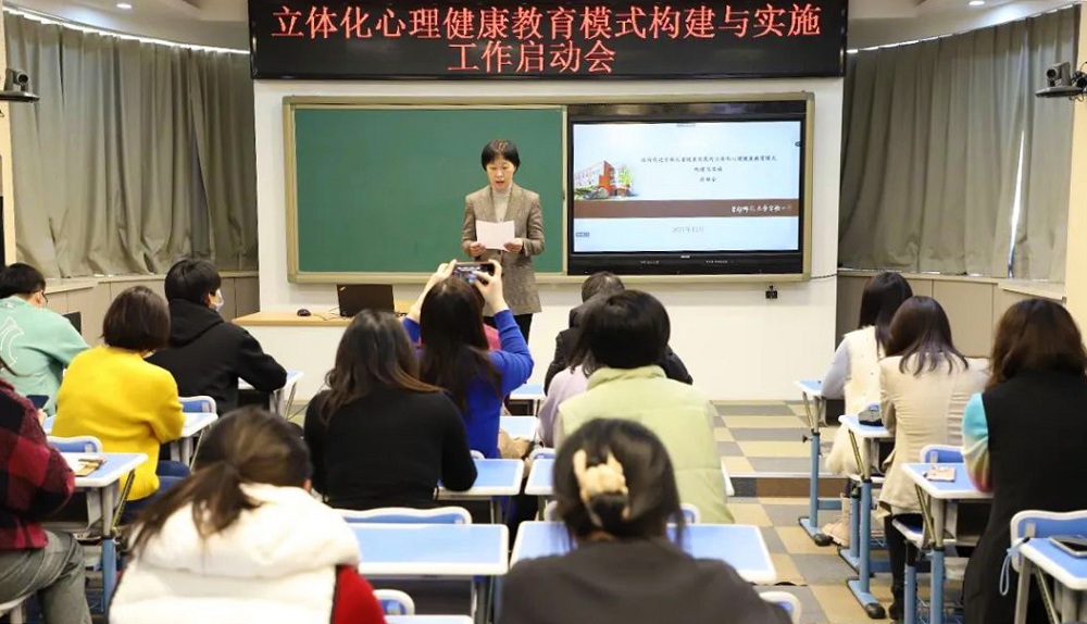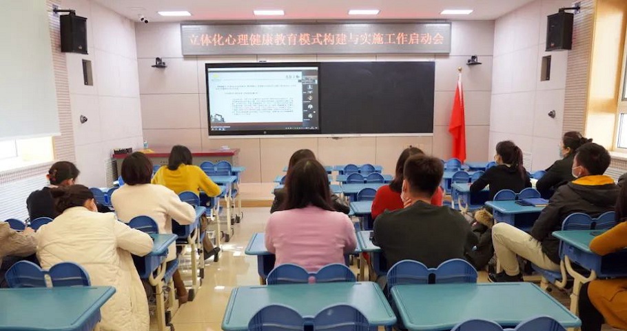 最后马福兴校长发言。他对项目给予高度肯定,并用立方体中的“长、宽、高”比拟项目贯彻的家校社协同、幼小初贯通以及学校层面全域性实践落地三个原则,强调在大学引领下如何通过全体教师努力将全域性心理健康教育扎实落地是项目成功的关键,并对双方持续开展深入研究表示全力支持。