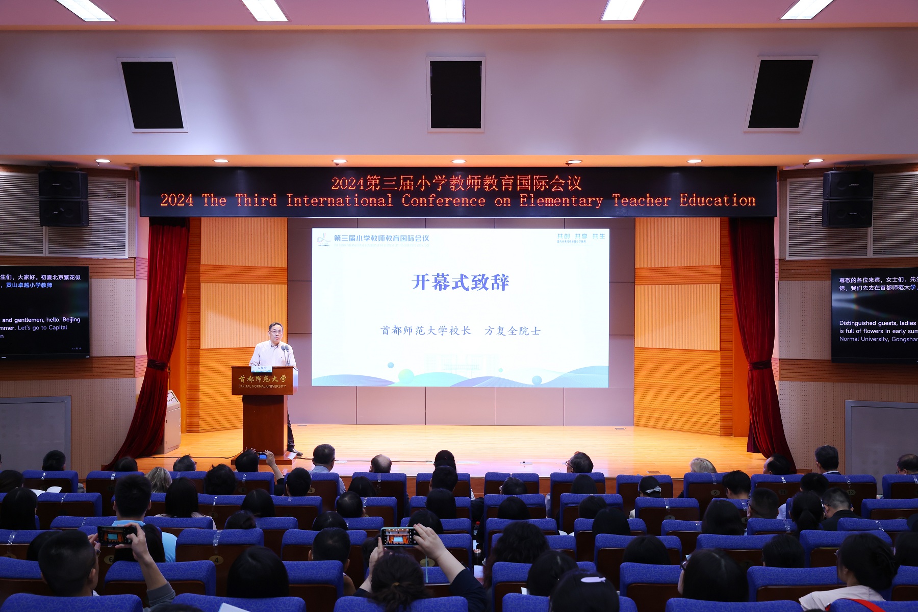 2024年5月24日至25日,以“共创、共享、共生:面向未来培养卓越小学教师”为主题的第三届小学教师教育国际会议在首都师范大学国际文化大厦召开。本次会议由首都师范大学主办,由首都师范大学初等教育学院承办,教育部高等学校小学教师培养教学指导委员会提供学术支持。会议有来自中国、澳大利亚、美国、芬兰、德国、日本、乌兹别克斯坦、巴基斯坦等十余个国家300余位专家、学者、师生参加。源自109个不同单位(其中包括88所大学)的与会者齐聚一堂。