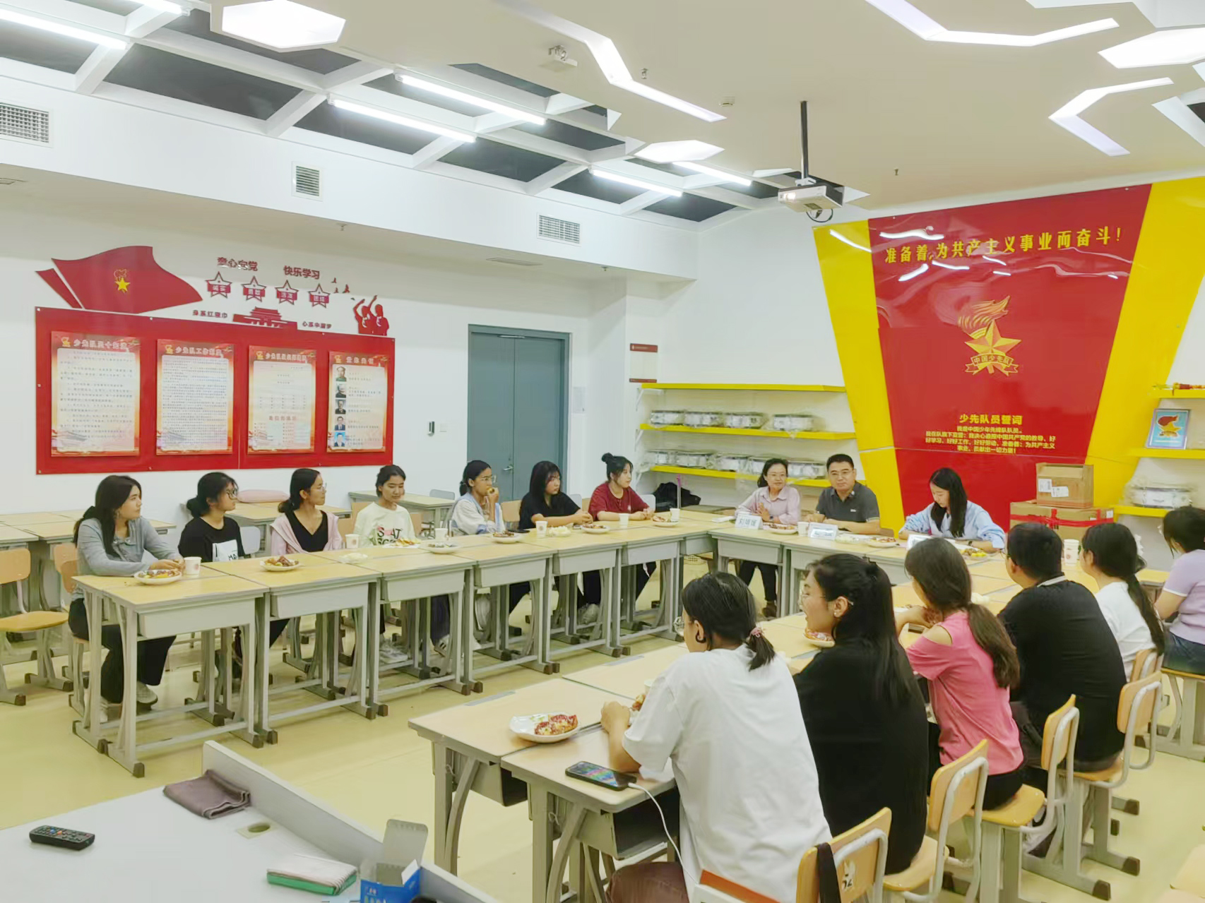 会上,与会教师向同学们表达了节日的问候和关怀,就在校学生校园生活情况、学业支持情况、入学适应情况与同学们交流。