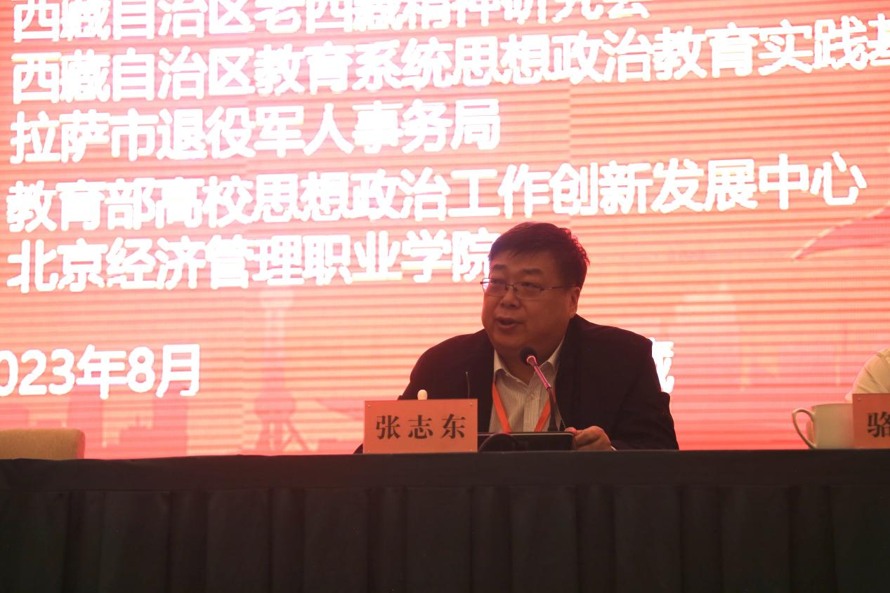 8月12日,学校党委书记张志东出席由全国高职高专院校思想政治理论课建设联盟主办,西藏自治区老西藏精神研究会、西藏职业技术学院马列教研室、西藏自治区教育系统思想政治教育实践基地承办,教育部 工作创新发展中心(广轻工)、北京经济管理职业学院协办的弘扬“老西藏精神” 铸牢中华民族共同体意识 “大思政课”建设论坛,并主持论坛开幕式。论坛于8月11日—16日在拉萨举行,来自全国各省、自治区、直辖市的34所高职院校的学校领导、马克思主义学院院长和骨干教师以及西藏自治区本专科学校的学生代表100多人出席会议。