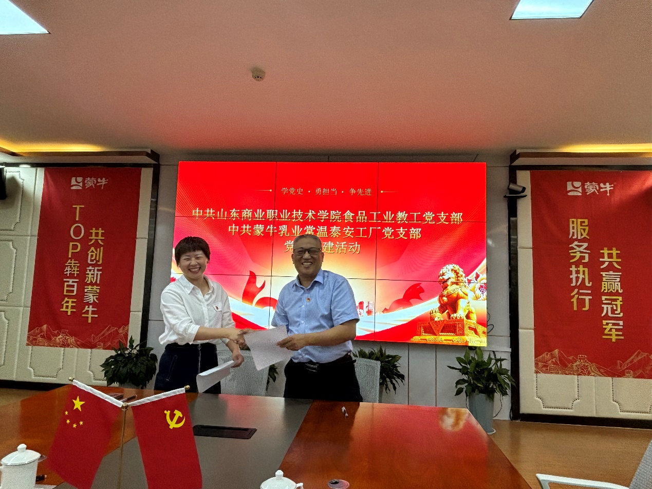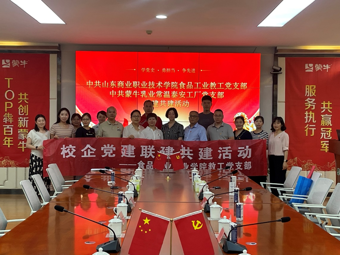 为了加强校企交流,以党建促发展,以共建促提升,实现业务共享共赢,携手共创相互促进、共同发展的良好局面,7月1日,食品工业产业学院与蒙牛乳业泰安有限责任公司开展“资源共享促党建 校企共建促成长”主题活动。