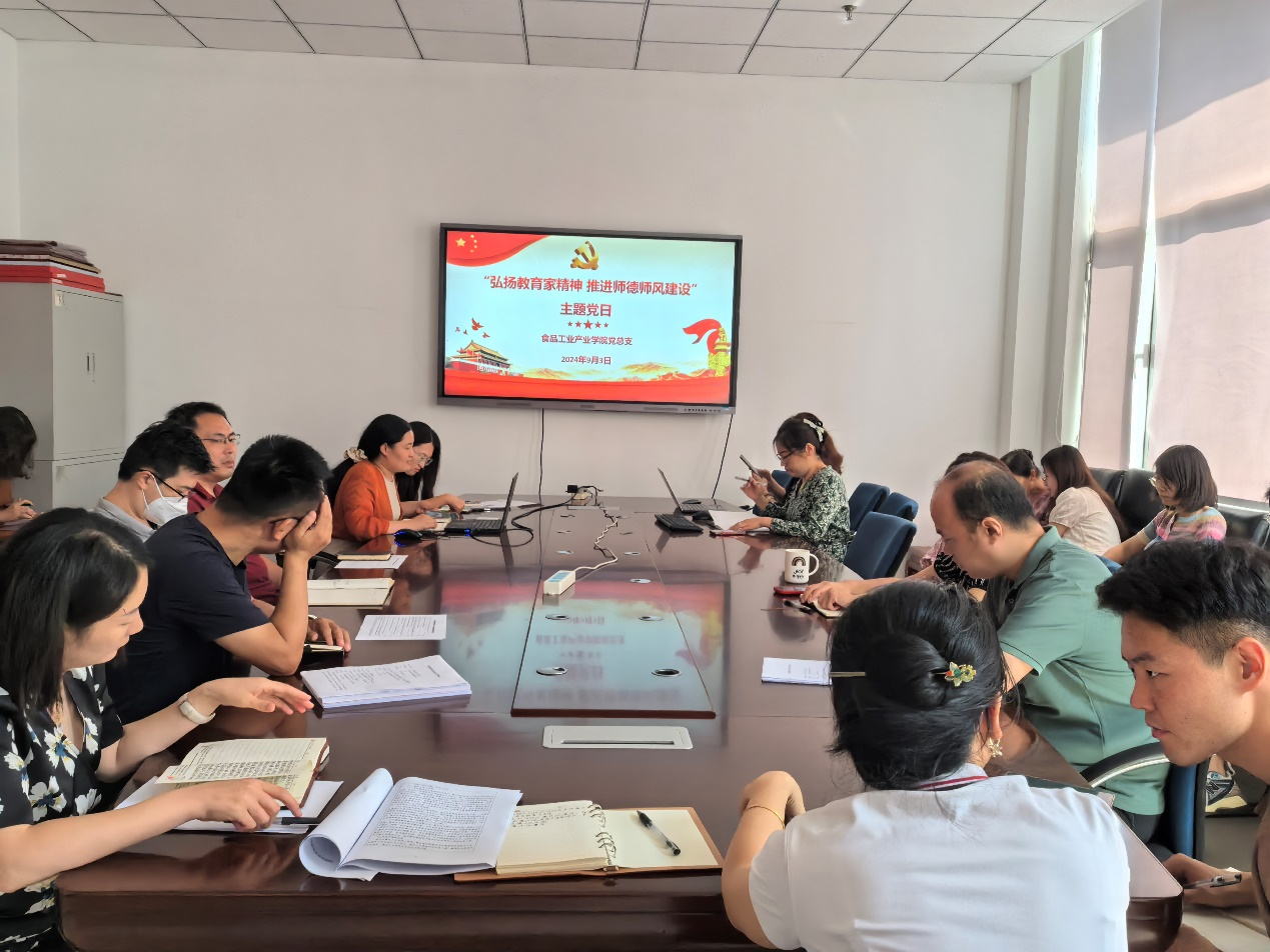 为深入学习贯彻落实习近平总书记关于弘扬教育家精神的重要指示精神,激励各位教师党员践行教育家精神,以更加饱满的状态和奋进的姿态迎接新中国成立75周年和第40个教师节,9月3日,食品工业产业学院党总支开展“弘扬教育家精神 推进师德师风建设”主题党日。