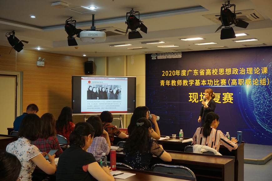 2020年9月19日,由广东省教育厅主办,广东省 理论课李霞名师工作室承办的广东省 理论课青年教师教学基本功比赛“高职概论组”现场复赛在我校成功举办。比赛邀请了广东省思想政治理论课教学指导委员会及省内本科、高职院校5位教授担任评审专家;来自全省12所高职院校12位选手参加了比赛;各高职院校马克思主义学院院长、副院长等30多位思政课教师参与了观摩交流。