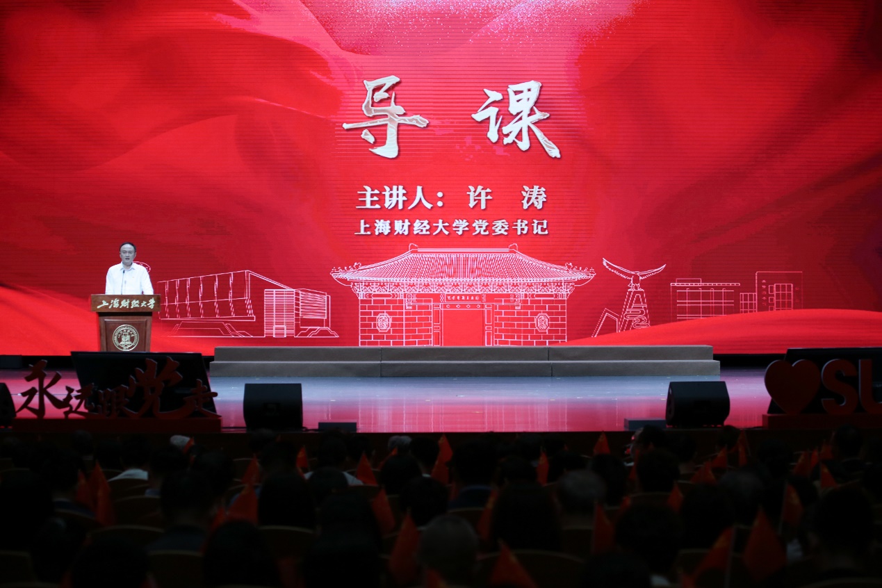 党课由上海财经大学党委书记许涛和师生党员、离退休老师、校友代表共同讲述,分为“红色基因代代传”“融合党建创新篇”“党建育人新风采”三个篇章,以视频、演讲、情景沙龙、主题党日分享等形式生动展现了百余年来一代代上财人听党话、感党恩、跟党走,始终与党的事业同频共振,为中华民族复兴贡献力量。