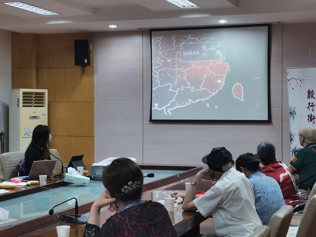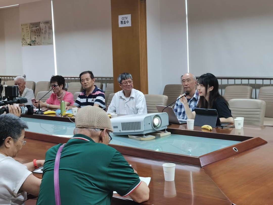 此外,她还指出了“百人百馆”项目的源头,即 “红色法文化”党建工作品牌。通过擦亮这一品牌,上海财经大学法学院运用“四史”教育与专业学习相结合的方式,因地制宜融入到日常教育管理中,不断推进、学院探索学科党建新模式、新方法。紧接着,志愿者展示了项目宣传视频,期间有老人对项目内容有所疑问,得到了志愿者同学的细致解答。如此一问一答不仅点出了项目意义,也让在座的社区学校负责人和老人们都有了更加深入的了解。老人们对其中的创新之处大为赞扬,其中一位同志感慨地说道:“视频里展示的红色场馆、红色法律人物,有许多都是我们没有了解过的,我们也很感兴趣。把党史和法律结合,也是一种新的学习方法。”