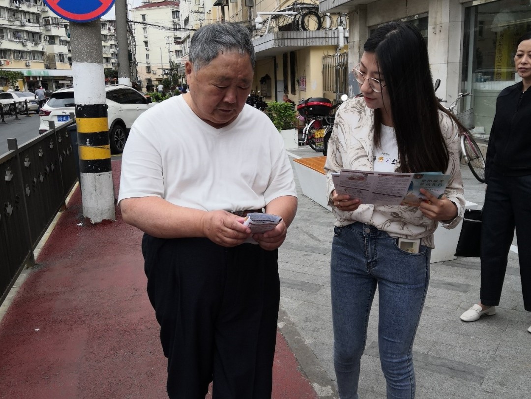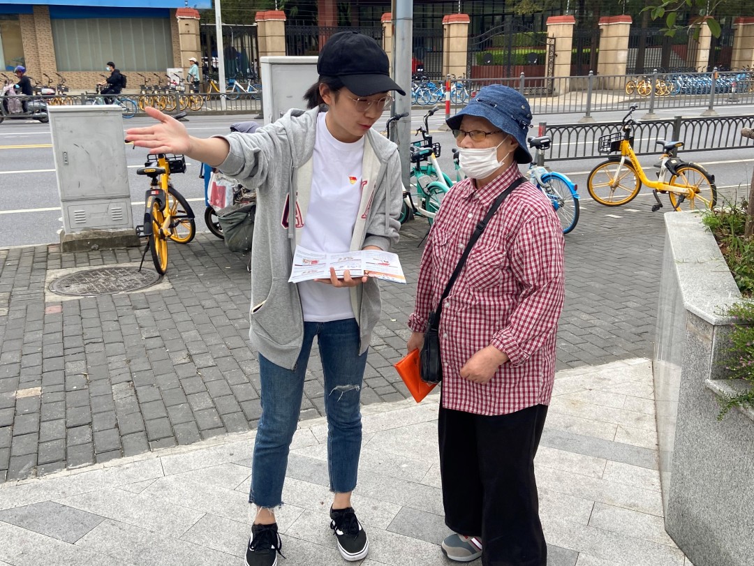 ▲ 图为志愿者发放宣传手册和传单、引导咨询