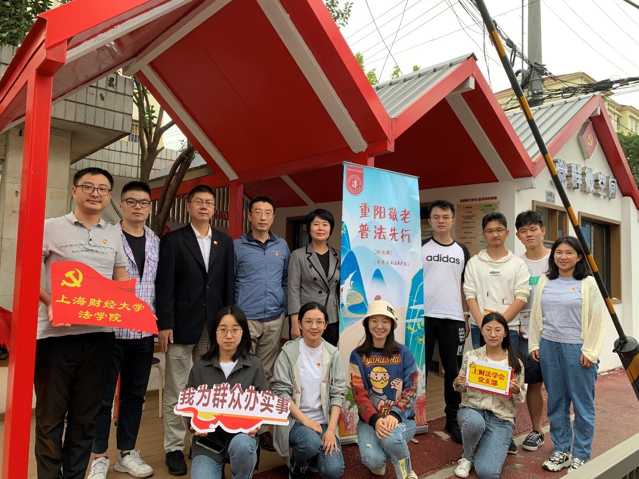 岁岁重阳日,普法暖人心。在重阳佳节来临之际,上海财经大学法学院开展了“重阳敬老,普法先行”专项主题活动。2021年10月12日下午,上海财经大学法学会党支部带领法学院师生来到国定路社区党群微空间,为社区群众提供法律宣传、咨询、解读等便民服务。法学院党委书记杨乐、法学院民商法学科带头人朱晓喆教授、法学院家事法研究中心主任叶名怡教授、组织员张熙等师生党员参与了此次活动。
