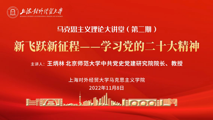 11月8日,为深入学习贯彻党的二十大精神,做好研究阐释工作,上海对外经贸大学“马克思主义理论大讲堂”第二期邀请北京师范大学中共党史党建研究院院长王炳林教授做“新飞跃新征程——学习党的二十大精神”专题讲座,支部全体党员认真听了本次讲座。