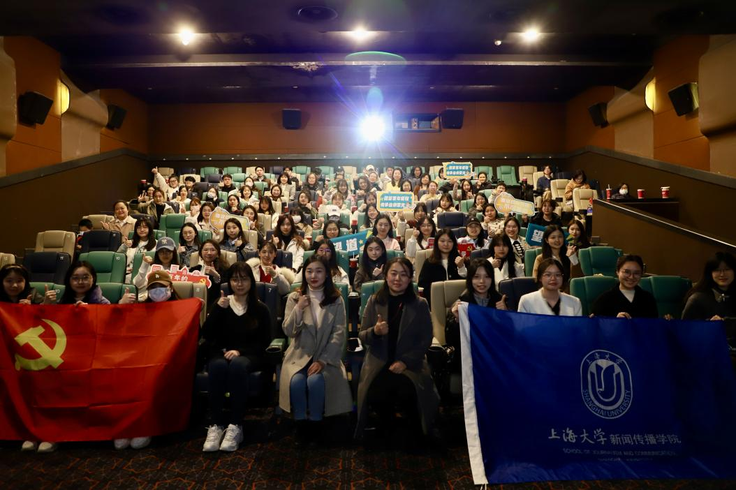 当日晚18:30,上海大学新闻传播学院本科生党支部师生党员、积极分子前往影院,共同学习由复旦大学新闻学院“薪传”讲师团黄睿彤、侯文君、熊扬悦同学策划设计的电影党课《何为“望道”:心怀信仰,不负热爱》,并集体观看了电影《望道》。