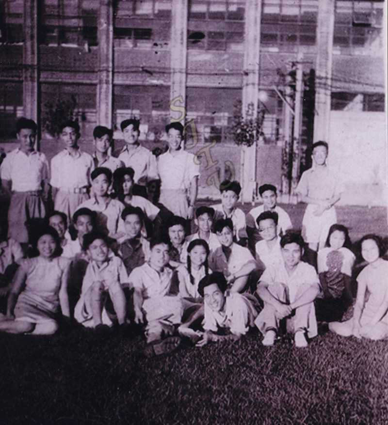 1949年6月,“山茶社”社员在交大校园内合影(前排卧者为黄旭华)