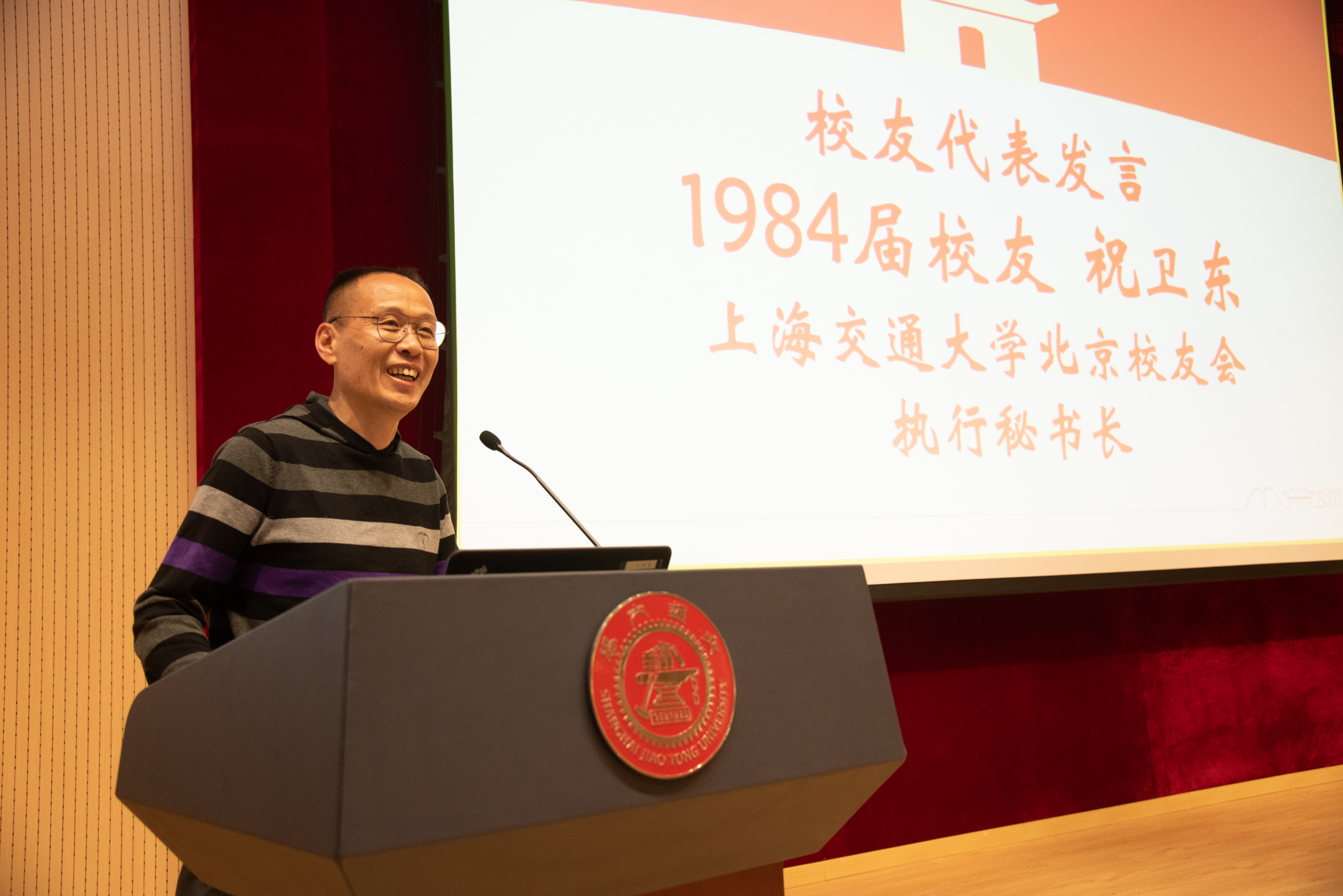 1984届校友、上海交通大学北京校友会执行秘书长祝卫东作为校友代表发言,介绍了“六系校友基金”的筹备、设计与未来规划,表示基金为关心机械工程学科发展、心系母校的校友们搭建互助交流的平台,期盼更多的校友积极参与,为机械工程专业的发展贡献力量。