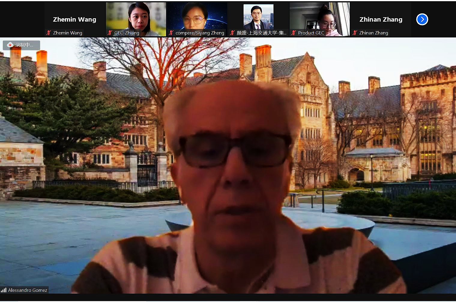 耶鲁大学本科生教育主任、应用物理教授Daniel Prober介绍了21世纪新能源技术的构成及应用,表示煤炭、石油、天然气等传统化石能源消费主体带来的能源安全、环境问题日益突出,发展可再生能源是保障能源安全、加强环境保护、应对气候变化的重要途径。他就零碳城市的实现技术手段与学生现场展开了探讨。