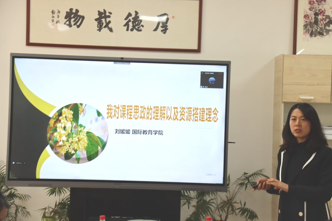 为深化“课程思政”教学理念,更好地推进学院“课程思政”各项建设工作,充分发挥课程建设“主战场”,课堂教学立德树人、育人育才的“主渠道”作用,国际教育学院举办了旨在共同探讨交流课程思政教学创新路径与方法的课程思政沙龙活动。首期活动邀请国教学院刘媛媛老师进行了主题为“我对课程思政的理解与资源建设理念”的讲座分享。活动由副院长李雪莲老师主持,校内外近40位教师线上线下参与此次讲座分享活动,活动也吸引了武汉大学、杭州师范大学等其他高校教师的积极参与。