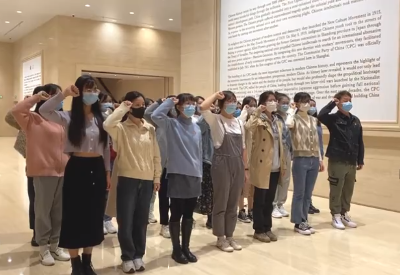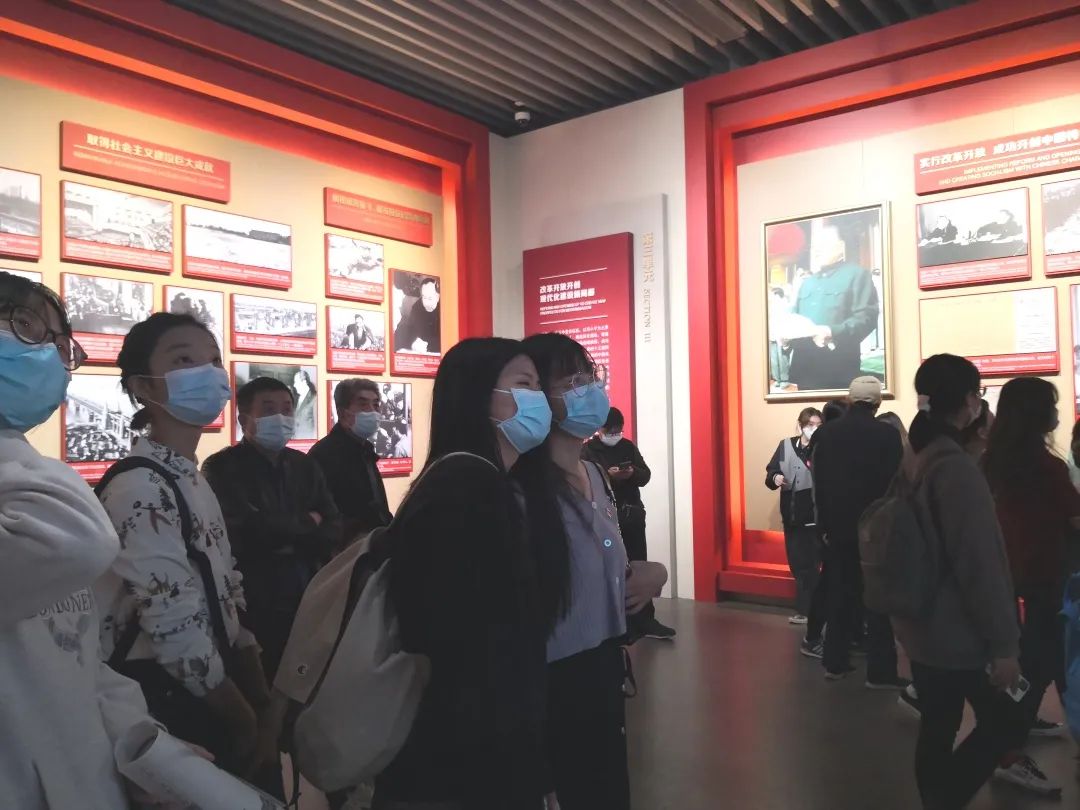 在接下来的“前仆后继 救亡图存”“民众觉醒 主义抉择”“早期组织 星火初燃”“开天辟地 日出东方”“砥砺前行 光辉历程”等部分的参观过程中,同学们透过讲解员专业的解说,回顾了中国共产党带领各族人民战胜艰难险阻,迎来了中华民族从站起来、富起来到强起来的伟大飞跃,更加深刻理解了贯穿展览全篇的“初心使命”。