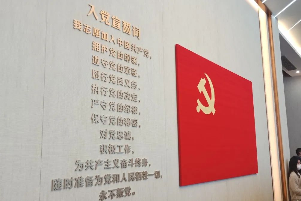 随后,两支部党员共同走进宣誓大厅,重温入党誓词。革命先辈们带着火炬般的精神照亮黑暗中的人民,他们坚定了马克思主义信仰,一生用实际行动践行着自己的信念。时代在变迁,信念不曾改变,当面向党旗,举起右手,握紧拳头,重温誓词的那一刻,党员的身份和职责,就已经深深融入血脉、铭刻于心。百年筚路蓝缕,百年风雨兼程。在中共一大会址纪念馆重温入党誓词,是对初心使命的回望,对历史和先辈的告慰,也是对接续奋斗的宣示。