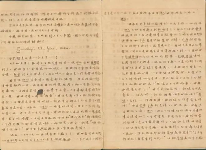 This diary is in the traditional style of a thread-bound exercise book, with small regular script "Diary 24.6.1920 - Xiusong 3.1.7.1920" written on the cover. It is attributed to Yu Xiusong, one of the founders of the early Communist Party in Shanghai. Written between June and July 1920, the diary is a rare historical record of some early activities of the Communist Party of China, before its founding in Shanghai, as well as a series of episodes of Yu's life.