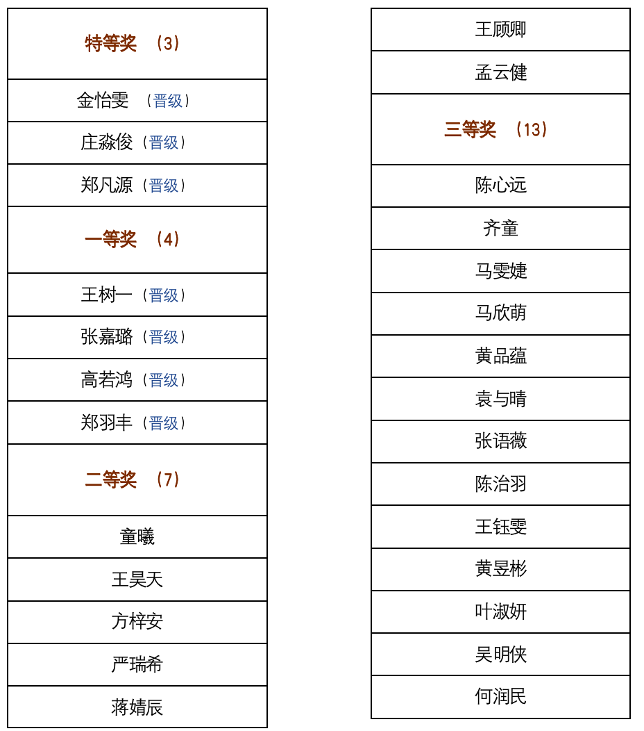 此次校选赛共产生特等奖3个、一等奖4个、二等奖7个、三等奖13个。其中,获得特等奖和一等奖的选手,将晋级省赛。